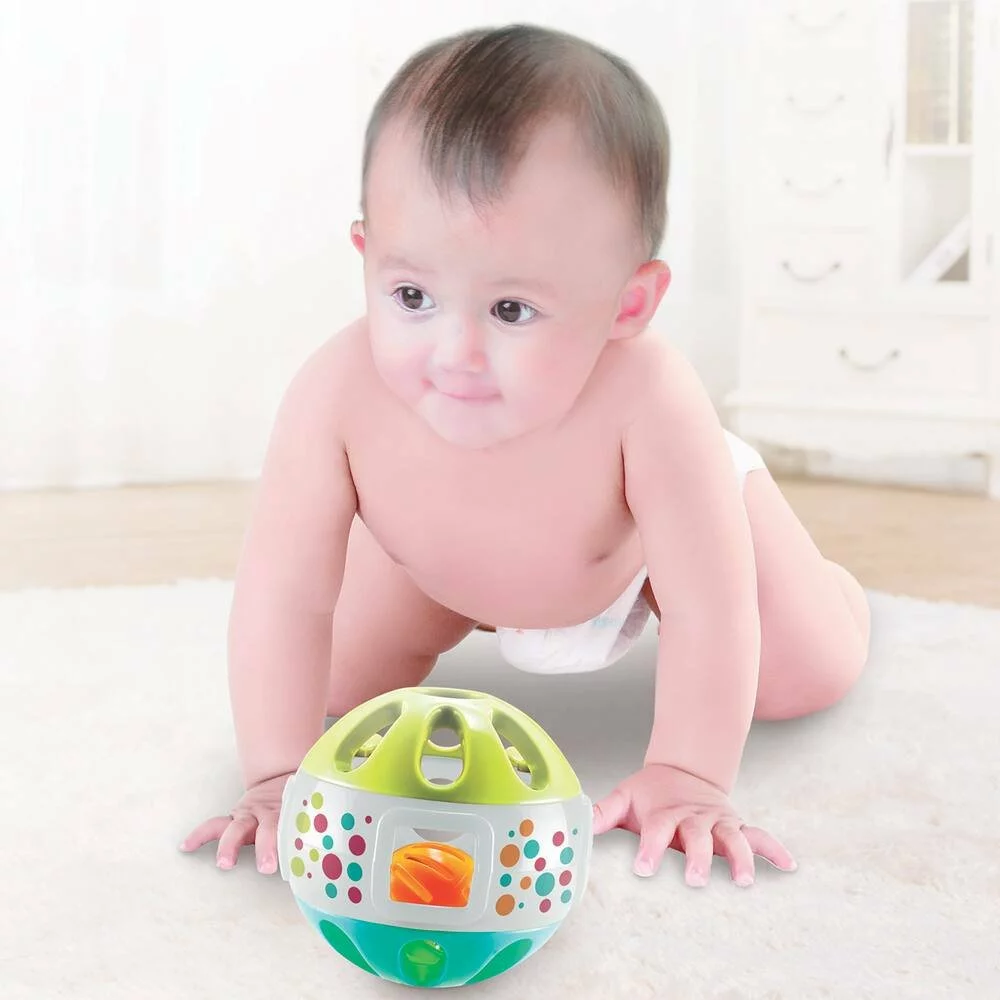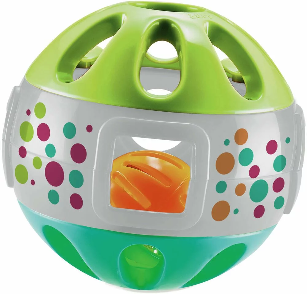 Balle ronde en plastique rigide avec 1 mini-balle à grelots à l’intérieur. Design 2 en 1 pour aider bébé à comprendre les différences de taille = grand et petit. Éveil : bruit de grelots amusant lorsque l’enfant secoue la balle. Motricité : Le bruit amusant de la balle quand elle roule encourage l’enfant à la suivre.