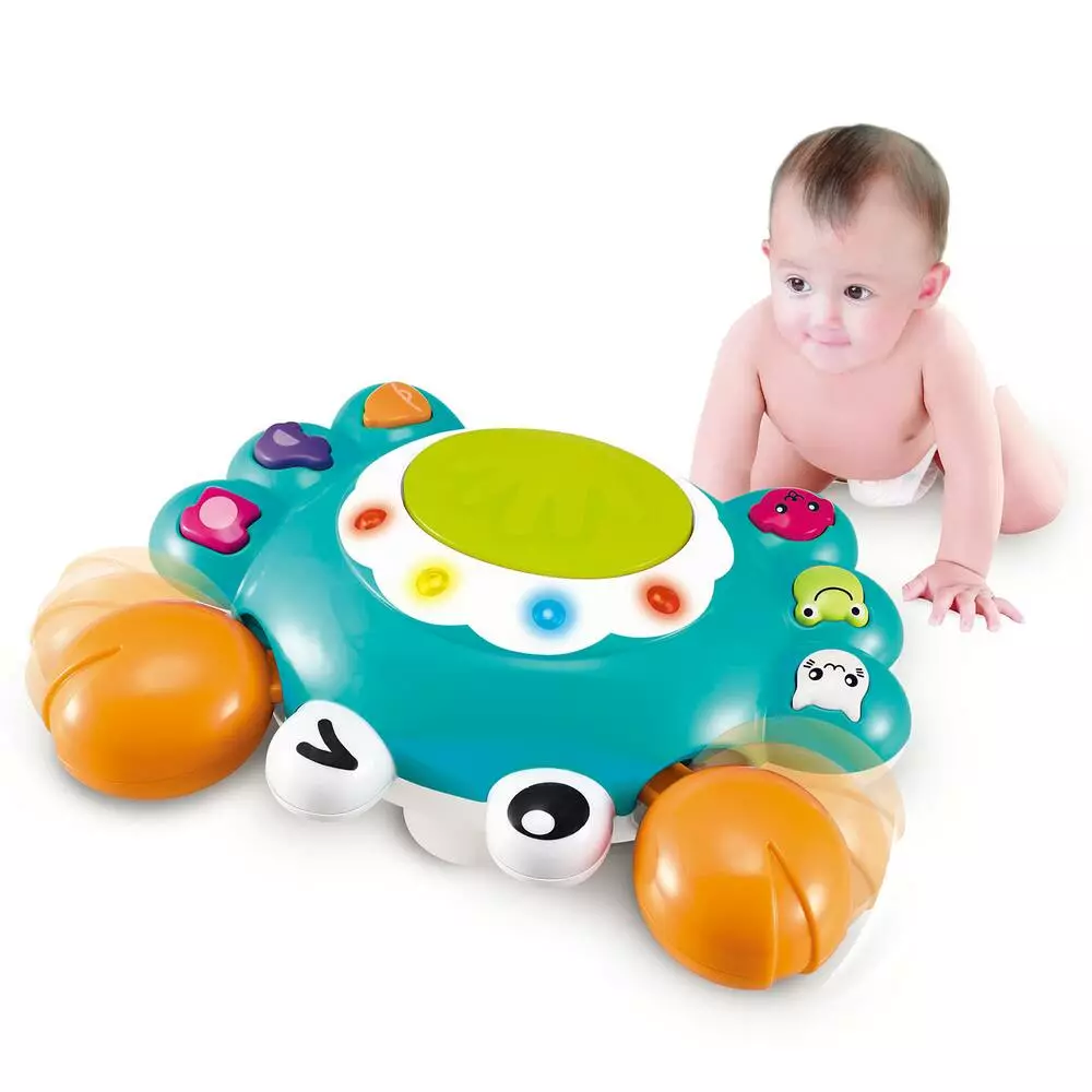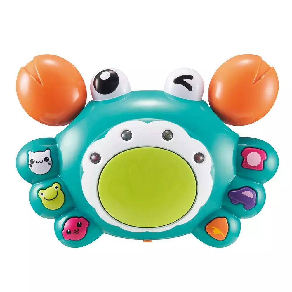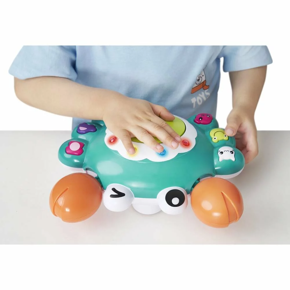 Avec Mon Crabi Crawl l’enfant découvre son environnement et les objets du quotidien. C’est un jouet très complet qui réunit différents modes de jeu qui s’adaptent à la croissance de l’enfant. Dans le premier mode de jeu l’enfant découvre le nom des objets et des animaux en appuyant dessus. Dès qu’il appuie sur le bouton central, Mon Crabi Crawl se met à se déplacer en musique, entrainant l’enfant à le suivre et à développer sa motricité globale. Le 2e mode de jeu est un jeu interactif. Mon Crabi Crawl demande à l’enfant de reconnaitre les objets de son quotidien et s’il répond correctement à 4 questions, Mon Crabi Crawl se met à se déplacer en musique ! Évolutif, Mode balade ou question : aide l’enfant à développer le langage. Interactif, il l’encourage à le suivre ! Effets sonores et lumineux.