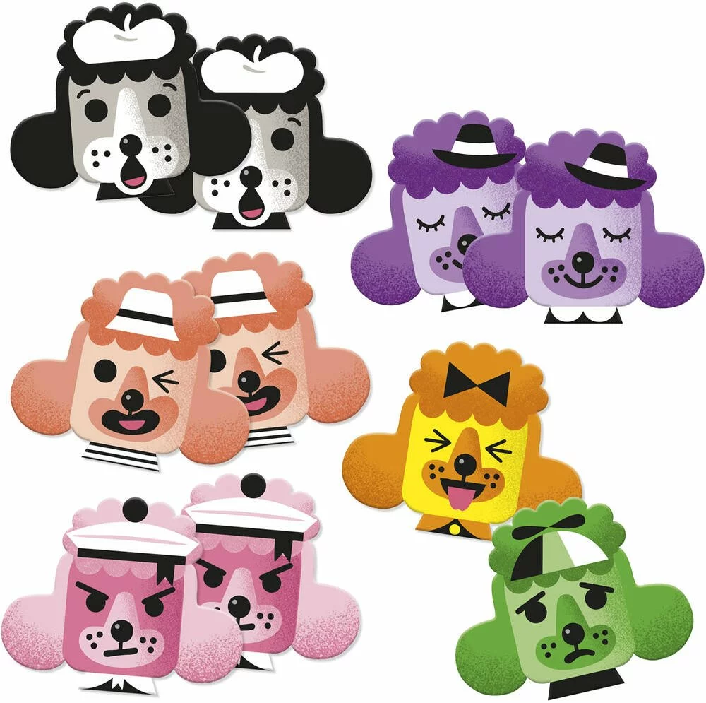 Apprend à faire des grimaces avec Avenue Mandarine ! Accompagner les enfants dès 2 ans dans leur développement, stimuler leur sens de l’observation et de l’association, contribuer à la mémorisation des formes et des couleurs seront autant de défis relevés par les adorables caniches de cette boîte. Grâce à son petit format et son couvercle magnétique, elle pourra être emportée partout ! Contenu : 24 pions soit 12 paires environ en forme de tête de caniche, notice