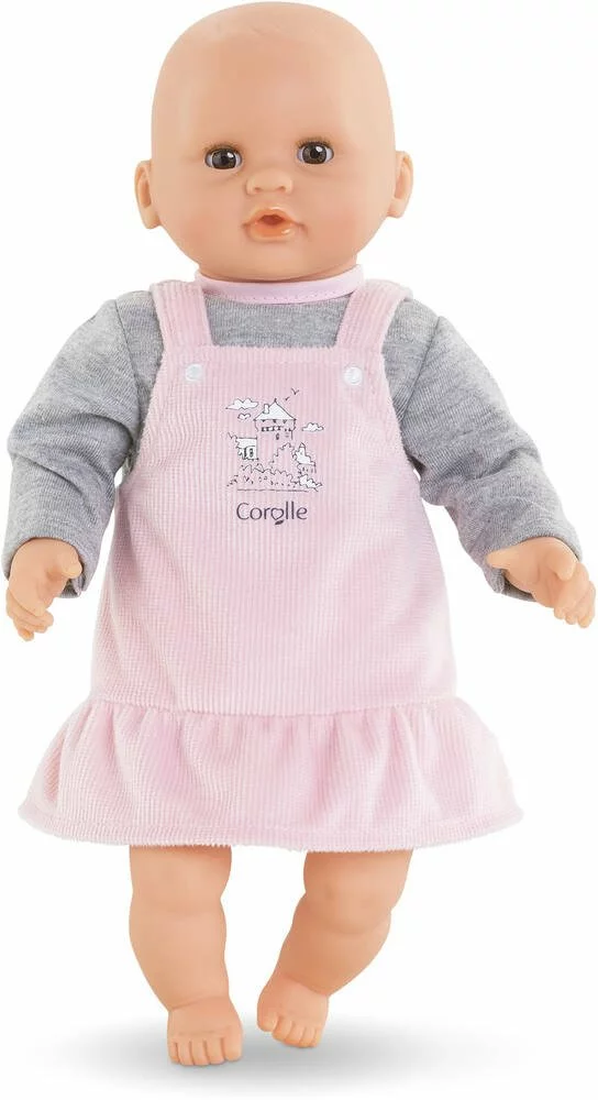 Intemporelle; la Robe Bords de Loire de couleur grise et rose ira Ă ravir aux petits poupons de 30cm mon premier poupon Corolle.