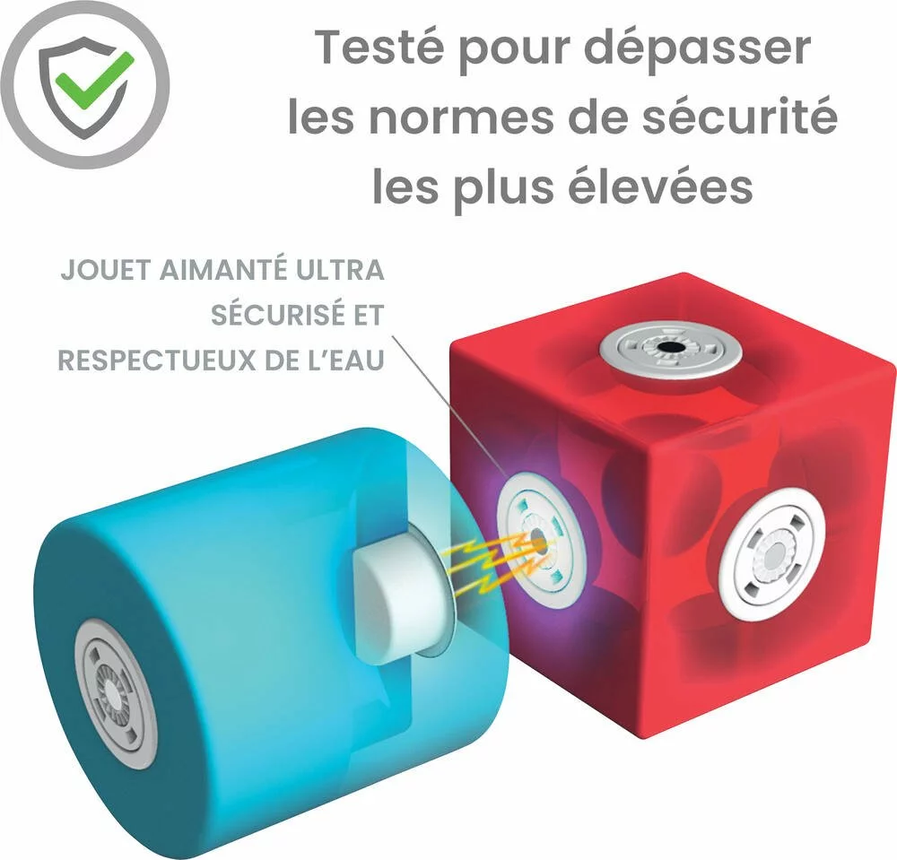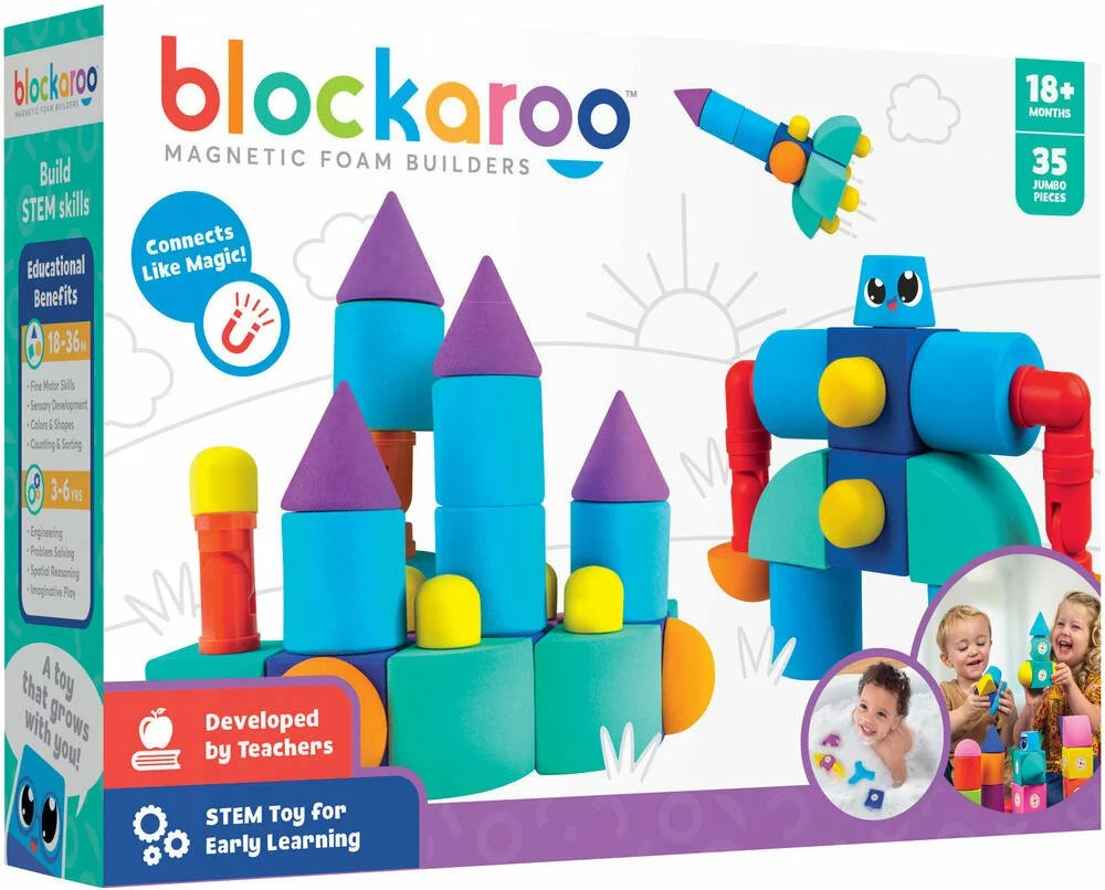 ThĂšme chĂąteau. BoĂźte contenant 35 piĂšces au total. Les blocs doux aimantĂ©s Blockaroo permettent aux petits de construire et de crĂ©er comme jamais auparavant ! Les grands blocs doux sont idĂ©aux pour les tout-petits et les enfants d’Ăąge prĂ©scolaire. Ils sont dĂ©veloppĂ©s par des enseignants et testĂ©s en matiĂšre de sĂ©curitĂ© pour mĂȘme dĂ©passer les normes internationales les plus strictes en matiĂšre de jouets. Une des nouveautĂ©s qui rend les Blockaroos vraiment spĂ©ciaux est son systĂšme de connexion aimantĂ©. Les blocs ne se repoussent jamais, crĂ©ant des possibilitĂ©s de jeu infinies. Les blocs aimantĂ©s non toxiques tournent Ă©galement Ă 360 degrĂ©s lorsqu’ils sont connectĂ©s et cliquent lorsqu’ils tournent, offrant encore plus de possibilitĂ©s d’interactivitĂ© et de crĂ©ativitĂ© ! Ils sont Ă©galement un jouet phĂ©nomĂ©nal STEM, enseignant des compĂ©tences prĂ©coces en STEM importantes telles que le comptage, le tri et l’empilement pour les tout-petits tout en stimulant le dĂ©veloppement tactile et sensoriel. Pour les enfants un peu plus ĂągĂ©s, ils favorisent la comprĂ©hension technique, la rĂ©solution de problĂšmes, la pensĂ©e spatiale et l’imagination. Contenu : 35 soft piĂšces incluses dont des cubes de 5.7 cm. MatiĂšre des blocs : mousse. Les blocs Blockaroo sont non toxiques, Ă©tanches et parfaits pour le bain. Ne pas utiliser en eau salĂ©e. Guide d’entretien et de nettoyage inclus. Dimensions de la boĂźte : 39 x 8 x 28 cm.