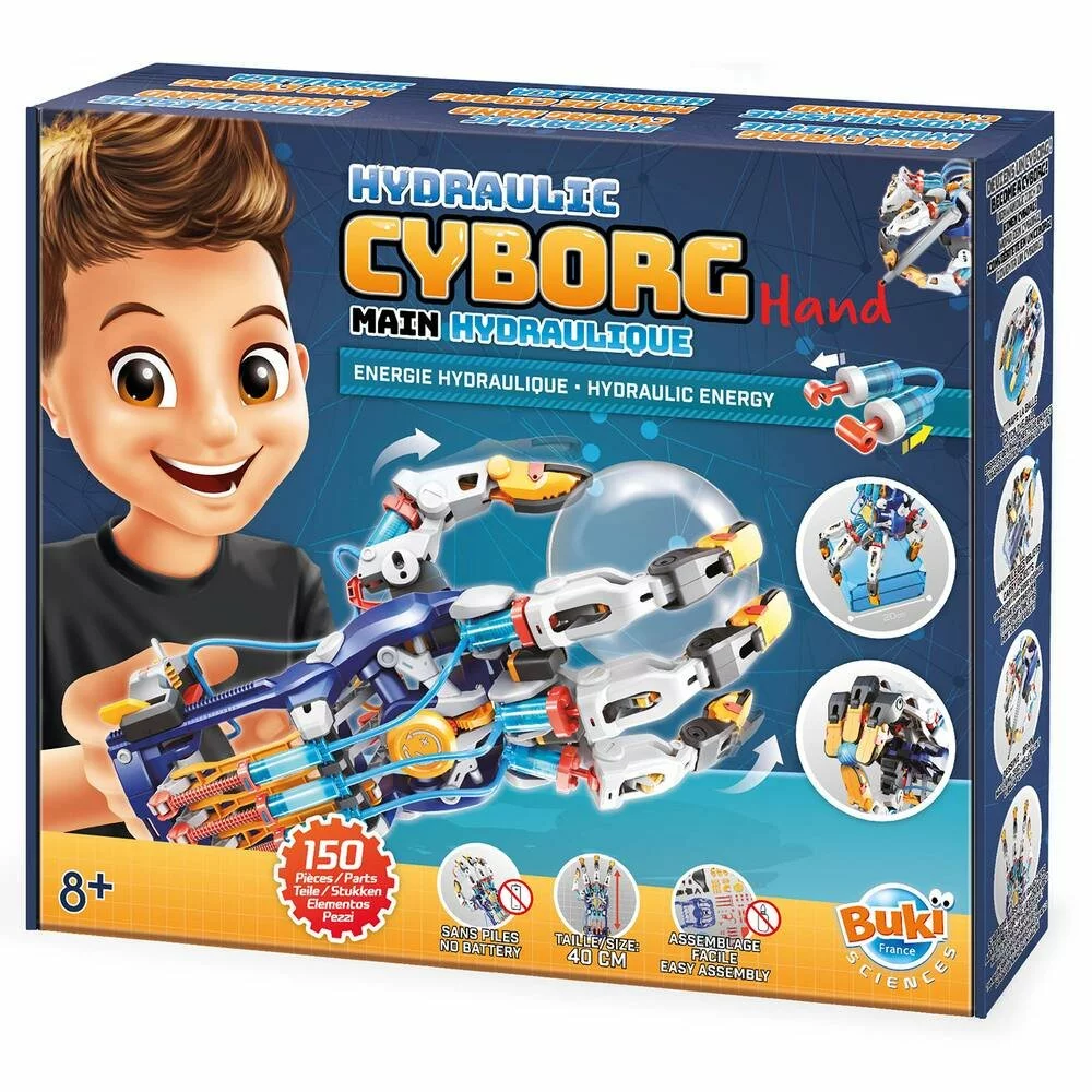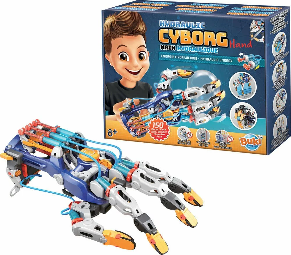 La Main hydraulique Buki fait usage des principes de base de la physique pour fonctionner. Elle est idéale pour les enfants, gauchers et droitiers, fans de science rêvant de devenir des cyborgs.
