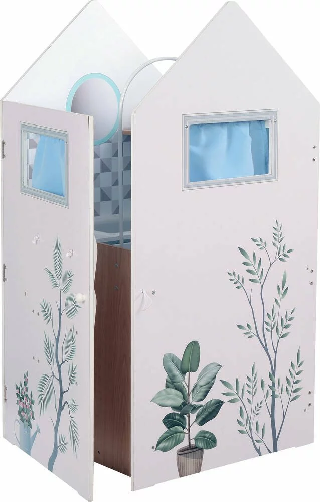 Ce jouet représente une maison miniature à découvrir parmi les jeux et jouets 3 ans. Une fois ouverte, elle présente 3 pièces : 1 cuisine avec une table haute pour faire à manger au bébé, une pièce d’eau avec un évier et une machine à laver, une chambre avec un lit de bébé et une penderie avec des cintres. La maison mesure 100 cm de haut, pour une longueur de 47 cm et une largeur de 53 cm. Cette maison miniature est blanche avec quelques éléments de couleur.