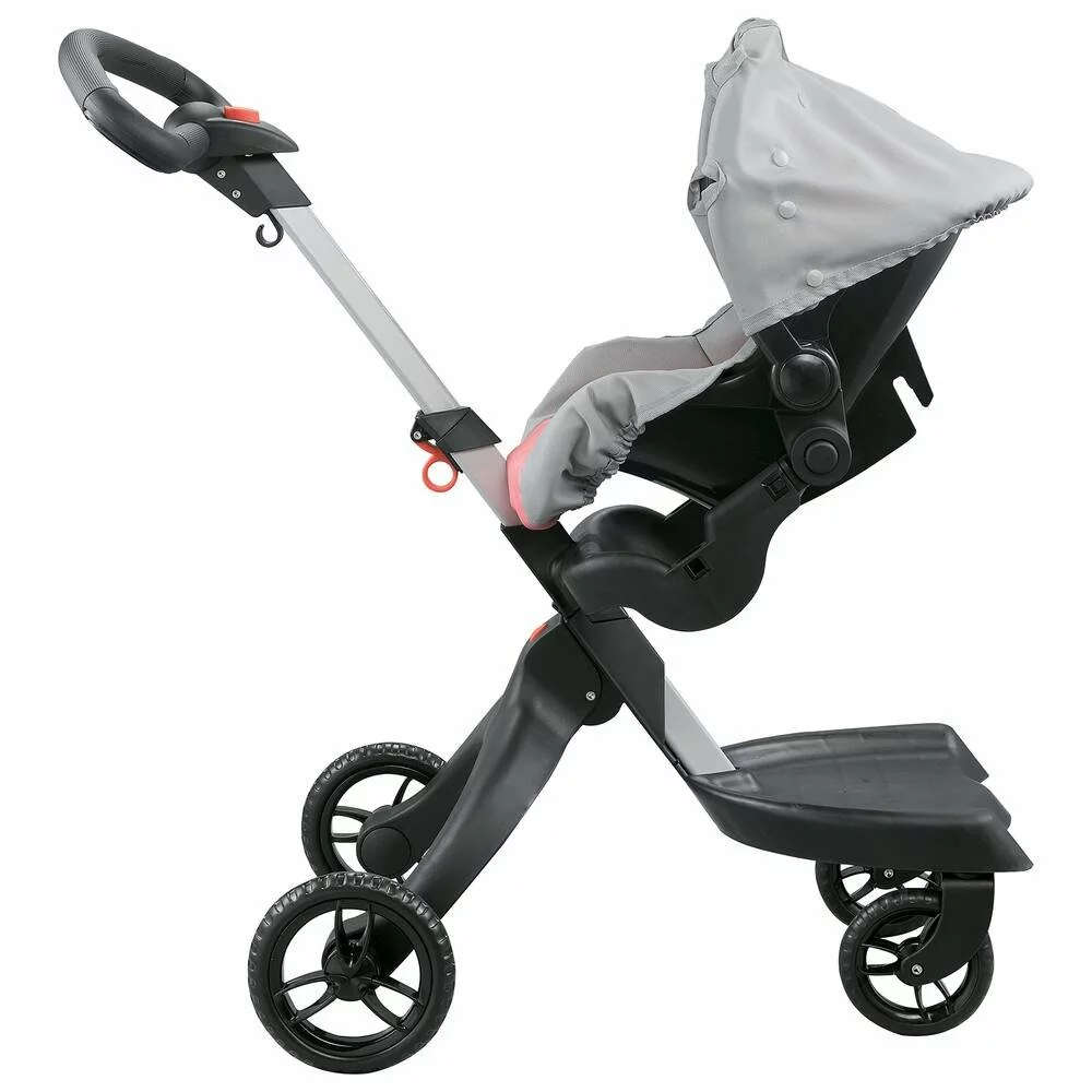 Pour poupée jusqu’à 46 cm (non fournie). Facile à manœuvrer, roues avant directrices. Le porte-bébé peut être réglé en position assise ou couchée. Le porte-bébé est amovible : il peut aussi être utilisé comme un siège auto. Réglage facile pour orienter vers l’avant ou vers l’arrière : il suffit de retirer le porte-bébé et de le positionner dans le sens souhaité. La poignée est réglable selon la hauteur de l’enfant : de 41.5 à 78 cm. Siège avec harnais de sécurité. Capote ajustable. Roues silencieuses. Le châssis est pliable et la nacelle amovible : pour un rangement et un transport plus aisés. Facile à assembler. L’assemblage doit être effectué par un adulte. Instructions de montage incluses. Matières : en plastique, tissu (polyester), métal et mousse EVA. Poids net de la poussette : environ 2.9 kg.