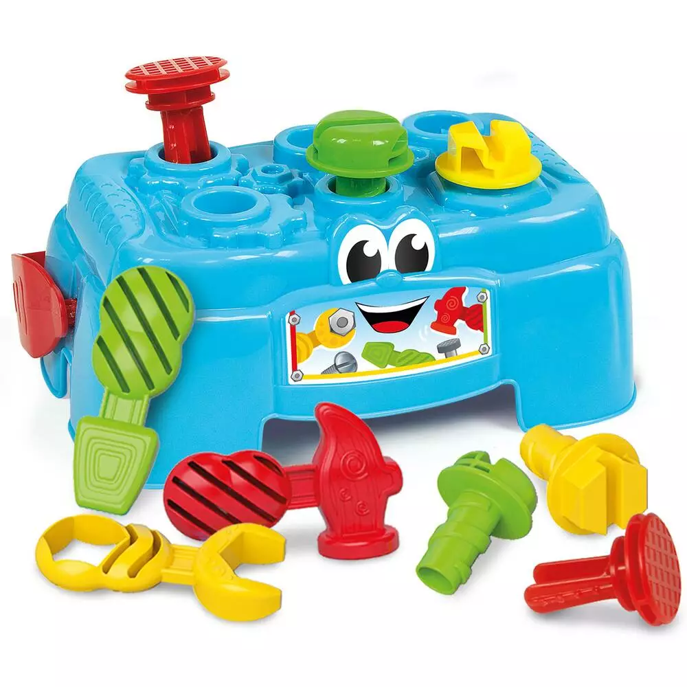 Un atelier de bricolage avec 3 outils (1 marteau, 1 tournevis et 1 pince) et 6 accessoires (clous, boulons et vis) pour s’amuser à bricoler. Il se transforme en caisse à outils que l’enfant peut emporter partout. Il stimule la coordination main-oeil et la motricité fine.
