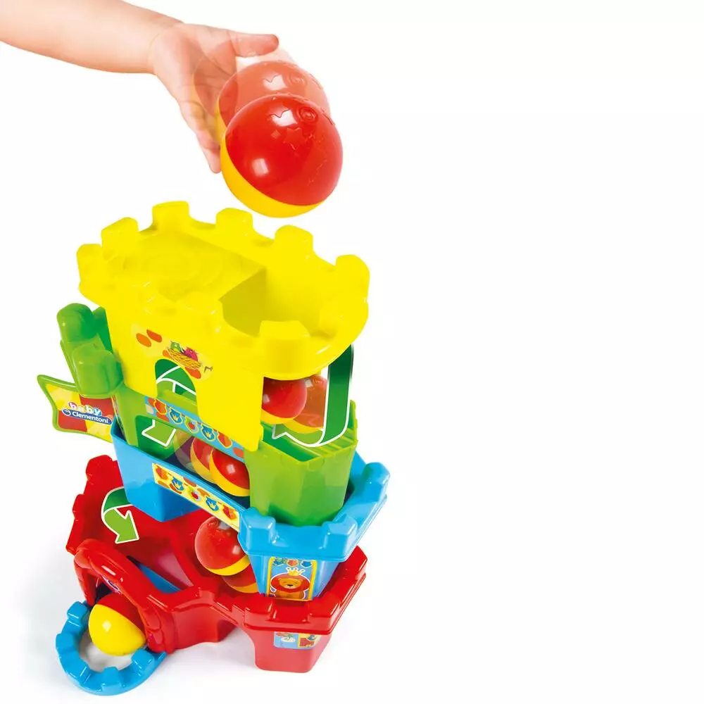Un château amusant pour divertir simplement les tout-petits. Bébé dépose la balle en haut du château et la regarde ensuite dévaler le château d’étage en étage. La balle est suffisamment grosse pour que bébé l’attrape facilement. Développe les capacités manuelles et la relation de cause à effet.