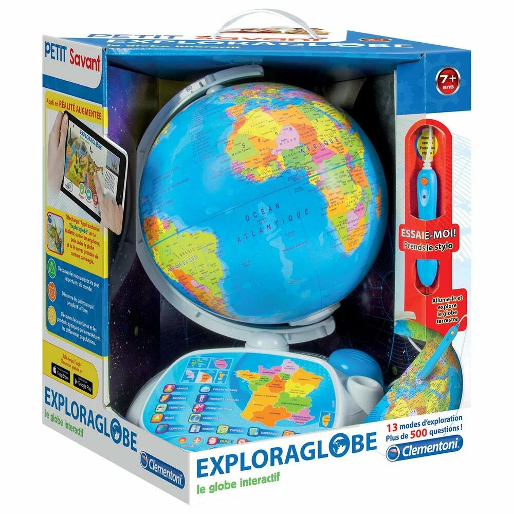 Une toute nouvelle version de notre globe intéractif à succès et son stylo à lecture optique ! Thèmes abordés : Continents, Pays, Capitales, Superficies, Populations, Monnaies, Langages, Territoires, Altitudes, Fuseaux horaires, Curiosités, Produits typiques, Hymnes. Avec plus de 500 questions divisées en 3 niveaux de difficulté pour tester ses connaissances. Apprendre sera fascinant grâce au nouveau design et au nouveau rendu audio ! Au total, plus de 3 heures de contenu informatif. Le globe n’est pas lumineux.