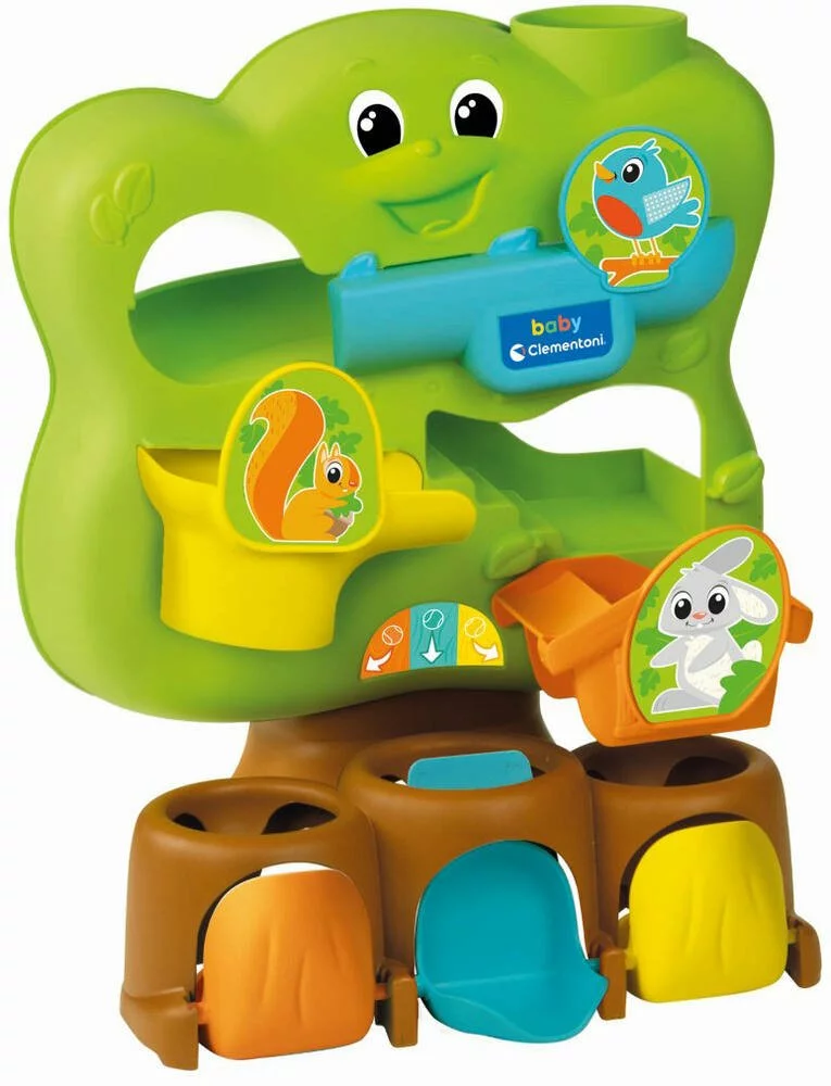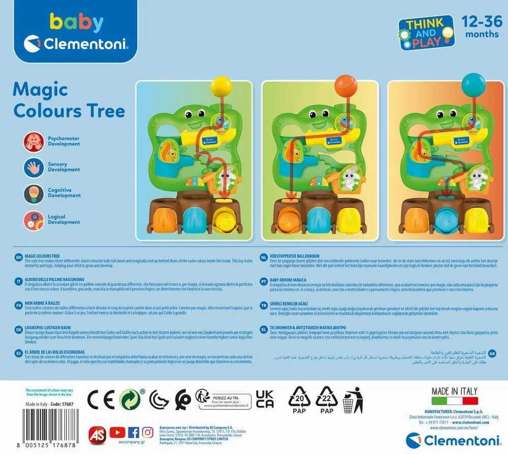 Bébé place la balle sur le haut de l’arbre, qui tombe dans le compartiment lié à sa couleur. 3 balles colorées de différentes tailles sont incluses. Un jouet qui stimule la mémoire et l’association logique. Fabriqué à partir de matériaux 100% recyclés.