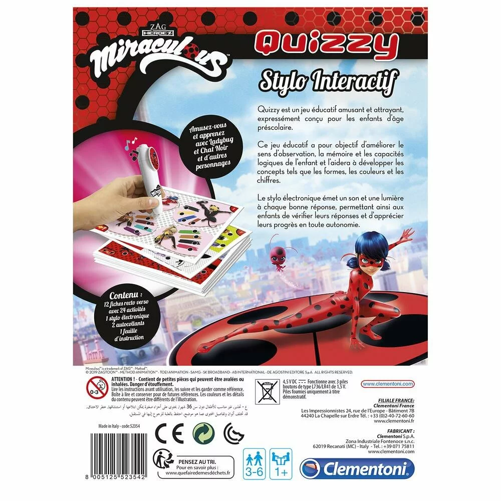 24 activités éducatives et plus de 200 quiz pour jouer avec Miraculous avec un stylo électronique pour découvrir les bonnes réponses. L’enfant apprend progressivement les concepts préscolaires comme les formes, les couleurs, l’orientation spatiale, les nombres et les quantités. Un jeu pensé pour développer les capacités de logique, d’attention et d’observation.