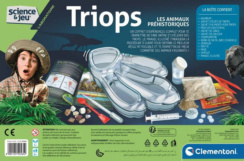Un aquarium unique pour donner vie aux Triops, des créatures préhistoriques fascinantes. Le bassin d’observation est équipé d’une loupe, d’un thermomètre et de nombreux autres composants pour en savoir plus sur ces espèces anciennes. Les œufs et la nourriture sont inclus ! Les Triops vivent en moyenne 1 à 2 mois et peuvent mesurer 3 à 4 centimètres. Contient de la nourriture, 1 loupe, 1 thermomètre, 1 sachet de sable et de nombreux accessoires.