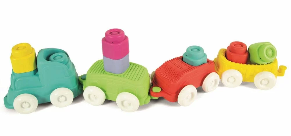 Un train avec la locomotive et ses wagons avec lesquels les enfants peuvent jouer et explorer. Les enfants peuvent découvrir les surfaces en relief, les différentes formes et ressentir la douceur du matériau Clemmy, tout en profitant d’une expérience sensorielle qui leur permettra de perfectionner leur sens du toucher et leurs compétences manuelles. Contient de nombreuses briques souples colorées à insérer dans la locomotive et les wagons, ou à empiler, pour créer des tours à renverser puis à reconstruire encore et encore. Les wagons peuvent être facilement détachés et assemblés. Les roues permettent au train de se déplacer et permettent aux enfants d’inventer de nombreuses histoires et de voyager tout en douceur. Lavable au lave-vaisselle (70 ° C max).