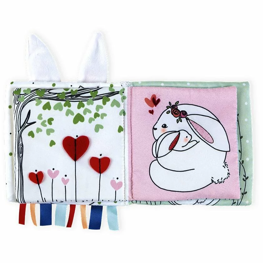 Voyagez au coeur des émotions grâce aux livres tout doux de Kaloo. Chaque livre doudou offre de belles illustrations à regarder, une histoire à raconter, des tissus à caresser et des activités amusantes pour stimuler les sens de bébé et passer de tendres moments ensemble. Découvrez l’histoire de deux petits lapins dont la rencontre va faire naître un tout mignon petit lapinou. Aimer, passer de bons moments en famille, voilà la recette qu’offre ce livre pour être heureux. Inclus : un anneau pour l’accrocher et des rubans à attraper !