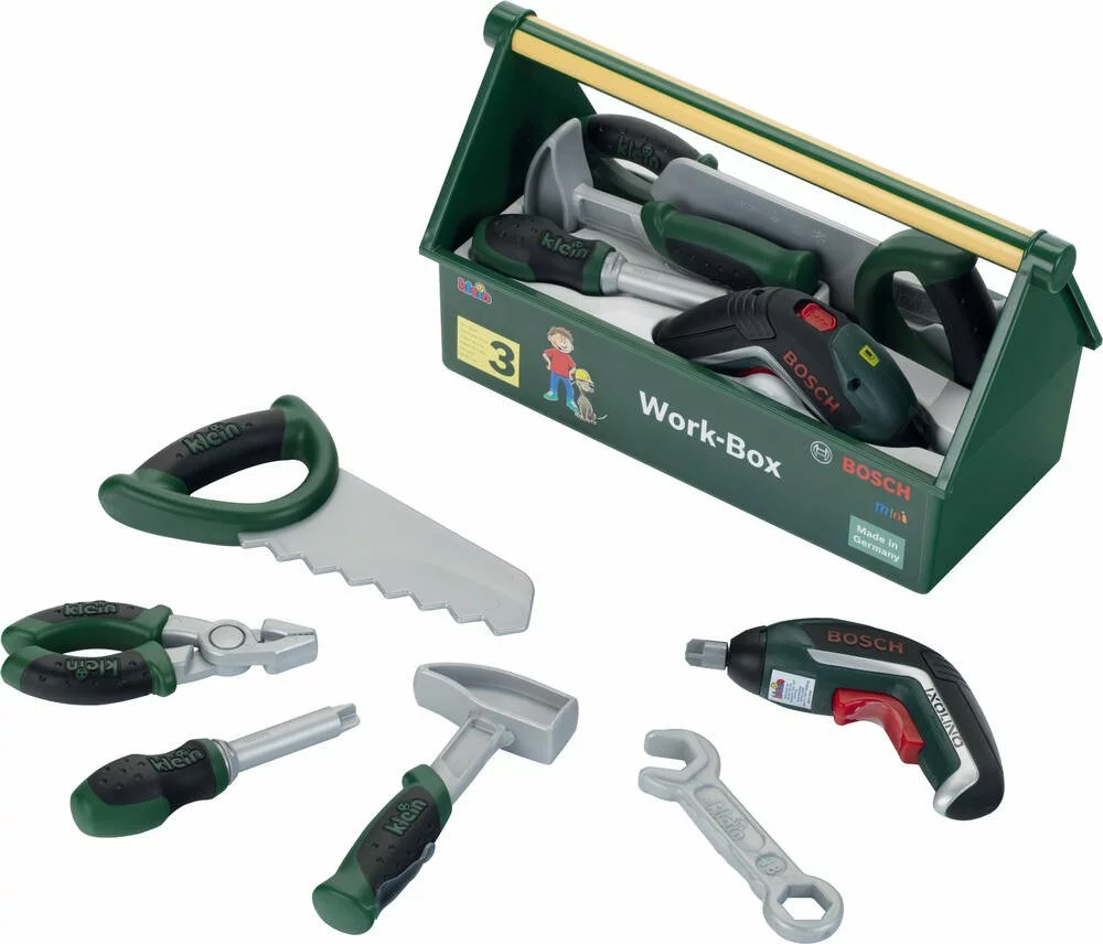 BOSCH CAISSE A OUTILS GARNIE AVEC OUTILS Contient de nombreux accessoires de bricolage indispensables : – clé plate – marteau – pince – scie – tournevis – avec Bosch Ixolino II Equipé de la sorte, tu peux désormais imiter les grands et devenir un pro du bricolage !