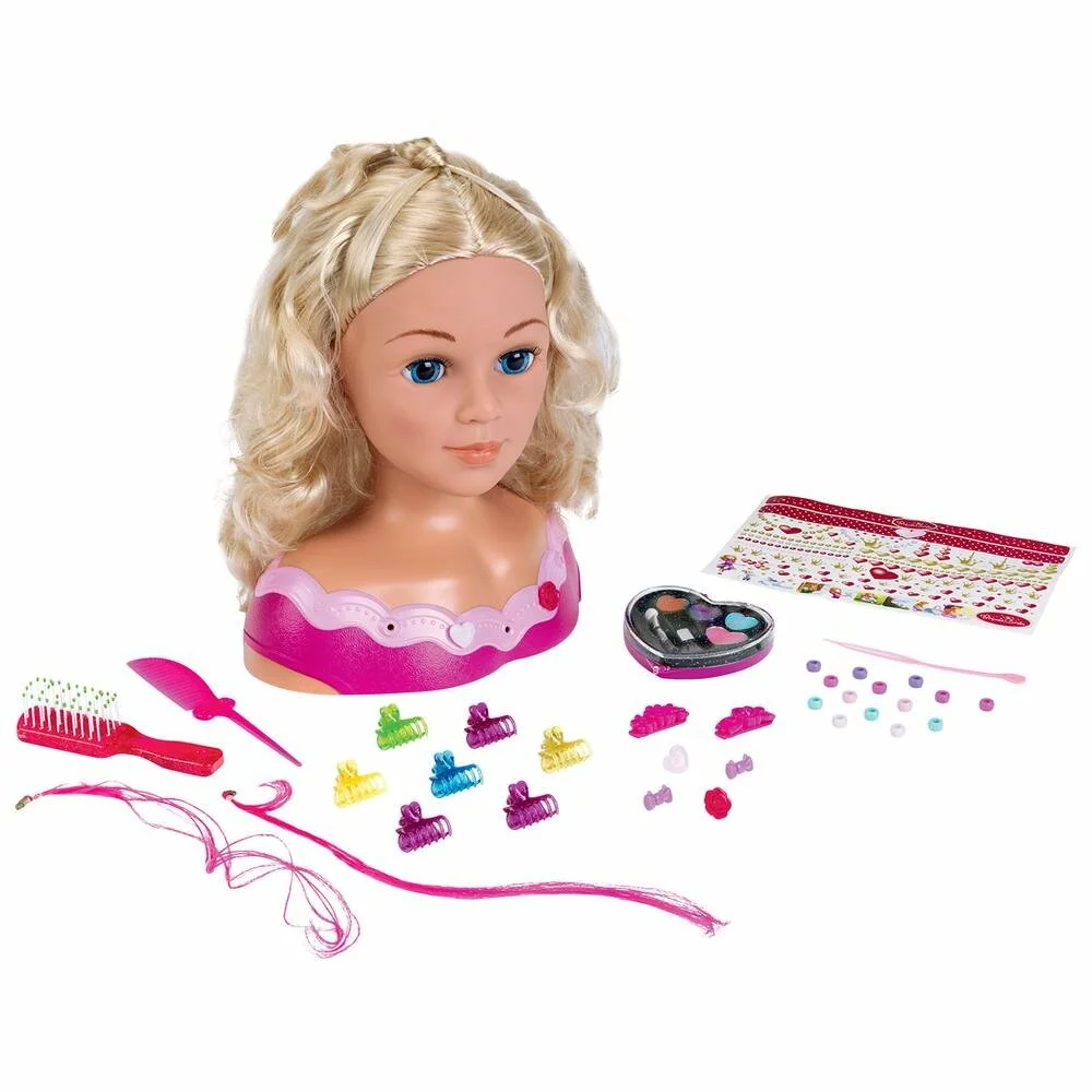 TÊTE A COIFFER ET A MAQUILLER PRINCESS CORALIE, GM Une tête à coiffer irrésistible ! Un visage aux traits réalistes, de beaux yeux bleus, de magnifiques cheveux blonds lavables et coiffables. Pour rendre ta tête à coiffer encore plus jolie, tu disposes d’une palette de vrai maquillage en forme de cœur avec pinceau et applicateur. Ce maquillage peut également être appliqué sur la peau. Des accessoires indispensables sont également fournis : brosse à cheveux, peigne, pinces et barrettes, mèche de cheveux à clipper, perles à enfiler. Avec changement de couleur – mèche de chevaux qui change de couleur sous l’effet de l’eau glacée ou de la chaleur. Exerce tes talents de coiffeuse et réalise les plus belles coiffures !Produit testé et conforme aux normes en vigueur dans le jouet et les cosmétiques. H 26 CM;