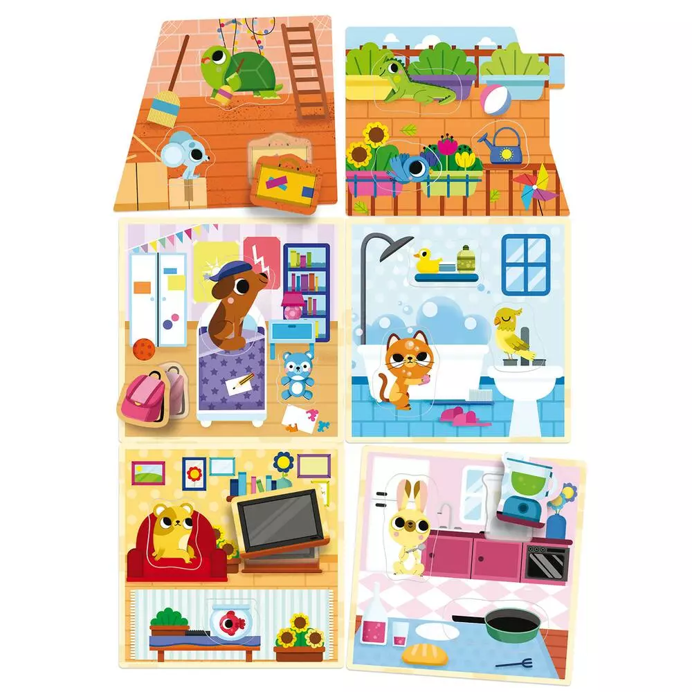 Mets chaque chose Ă sa place. Pour dĂ©couvrir et reconnaĂźtre les animaux domestiques et un grand nombre d’objets de la maison ! L’enfant s’amusera Ă placer correctement les silhouettes dans la petite maison dans la petite maison et il dĂ©veloppera sa motricitĂ© et son imagination tout en s’amusant.