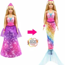La Barbie sirène Dreamtopia est le jouet pour enfant incontournable des catalogues de jeux et jouets 3 ans 2021-2022. Avec ses accessoires et sa jupe de princesse qui se transforme en queue de sirène, cette Barbie permet à l’enfant de faire travailler son imagination et d’inventer de nombreuses histoires féeriques.