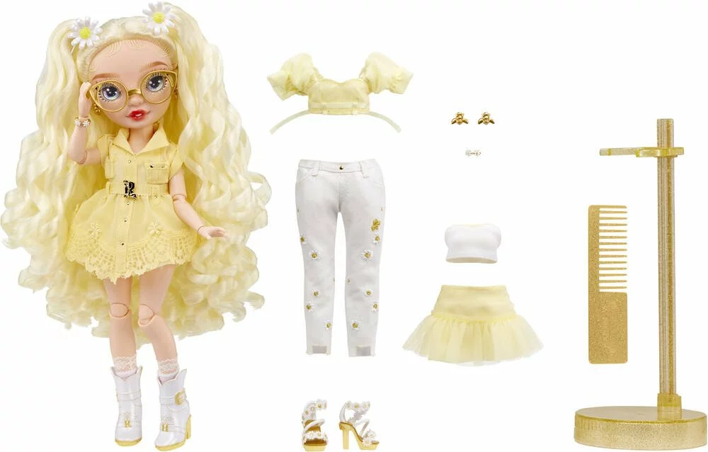Contient 1 poupée de 27 cm, 2 tenues, 2 paires de chaussures, 1 peigne, 1 support pour poupée et des accessoires.