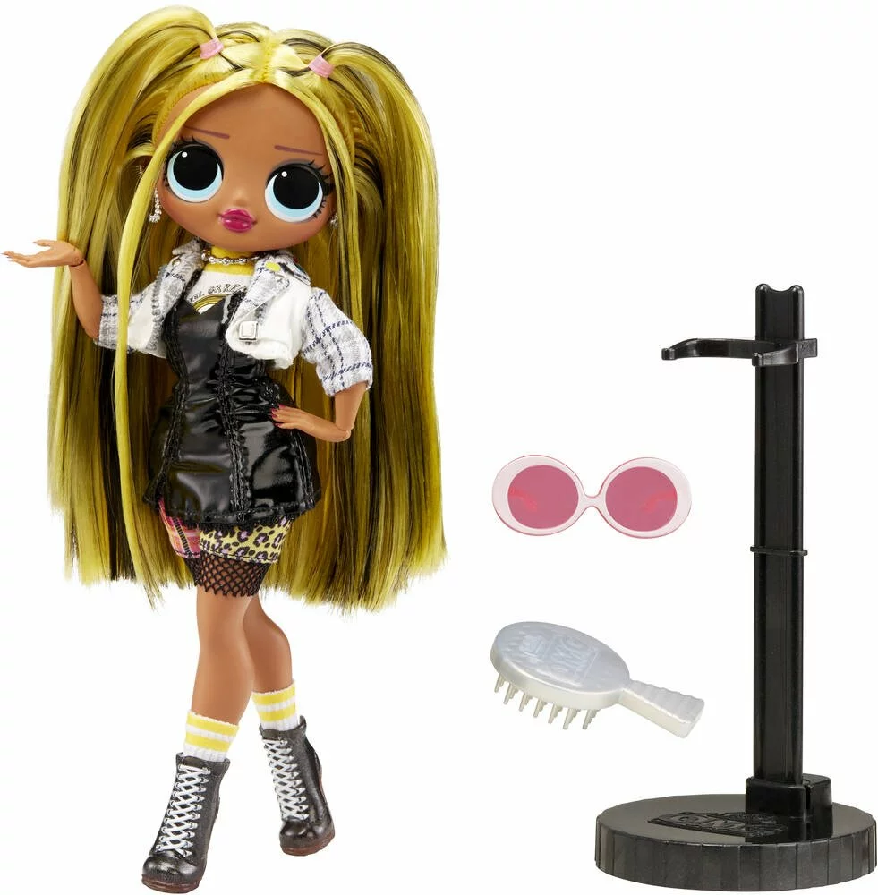 1 poupĂ©e mode LOL Surprise OMG, une tenue, des chaussures, des accessoires, une brosse Ă cheveux et un support de poupĂ©e- La poupĂ©e de mode OMG Alt Grrrl est une rebelle qui aime surprendre les gens avec l’inattendu. Elle a un trĂšs joli visage, des cheveux magnifiquement coiffĂ©s et des membres mobiles pour de nombreuses poses. En plus, c’est la grande soeur de l’ultime rockeur Grunge Grrrl-