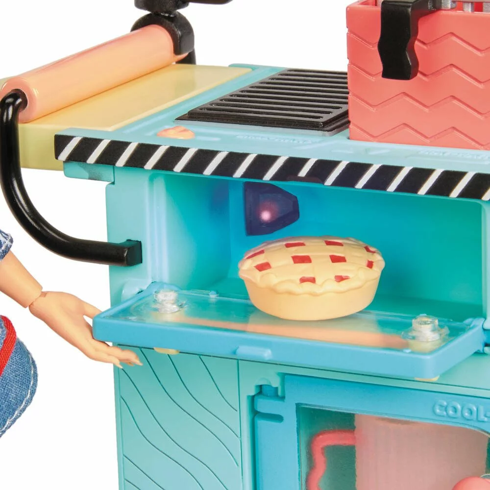 Invite tous tes amis à venir manger un petit bout ! Inclut une poupée OMG exclusive ainsi que des accessoires qui changent de couleur ! 45 surprises dont 1 poupée OMG de 24 cm. Voici la toute 1ère dînette à emporter de LOL Surprise OMG ! Bienvenue au Dee-Lish Diner, où Miss Sundae sert les meilleurs hamburgers et frites de la ville. N’oubliez pas le dessert, il y a de la tarte aux cerises au menu ! Découvrez la poupée mannequin exclusive, Miss Sundae, et des fonctionnalités interactives avec changement de couleur. Miss Sundae est également livrée avec 1 tenue convertible pour plusieurs looks et est articulée pour des tonnes de poses. L’ensemble de jeu comprend à la fois des surprises avec changement de couleur à l’eau et avec UV. Mettez la tarte au four et allumez la lumière, regardez-la cuire ! Prête pour une bouchée à manger ? Placez un hamburger sur le gril, n’oubliez pas d’appuyer sur la galette pour voir de véritables marques de gril. Remplissez la friteuse d’eau tiède et déposez-y les frites pour les faire cuire ! Vous avez soif ? Versez une boisson glacée du distributeur et découvrez quelle saveur de limonade vous avez ! Le bac à glaçons permet aussi de faire de vrais glaçons ! Chaque set de jeu contient 1 poupée mannequin LOL Surprise OMG, 1 set de jeu extensible, 1 distributeur de boissons, 1 registre, des ustensiles de cuisine, 1 menu, des accessoires alimentaires, 1 tenue, 1 brosse et 1 socle.