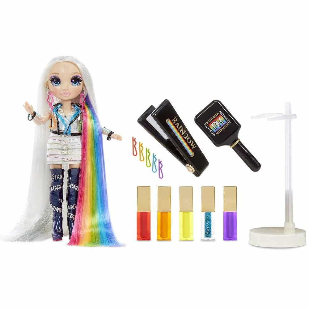 Amaya Raine a des cheveux argentés extra longs avec de magnifiques reflets arc-en-ciel cachés sous sa chevelure. Avec le kit de couleurs inclus, laissez parler votre imagination et créer des colorations extraordinaires. Puis rincez les cheveux à l’eau et recommencer de nouvelles créations ! Amaya est articulée et livrée avec une tenue complète : une jupe, un haut, une veste transparente, une paire de bottes ainsi qu’une paire de boucles d’oreille. Vous pourrez même l’exposer grâce au socle inclus. Compris dans le coffret :