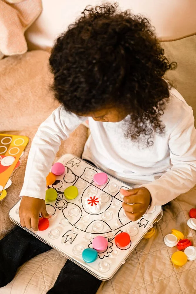 Un jeu éducatif qui permet à l’enfant de manipuler, d’identifier et d’associer les couleurs. Grâce aux pions rotatifs et aux engrenages intégrant des effets d’optique l‘enfant joue avec ses compositions. Un effet spectaculaire!