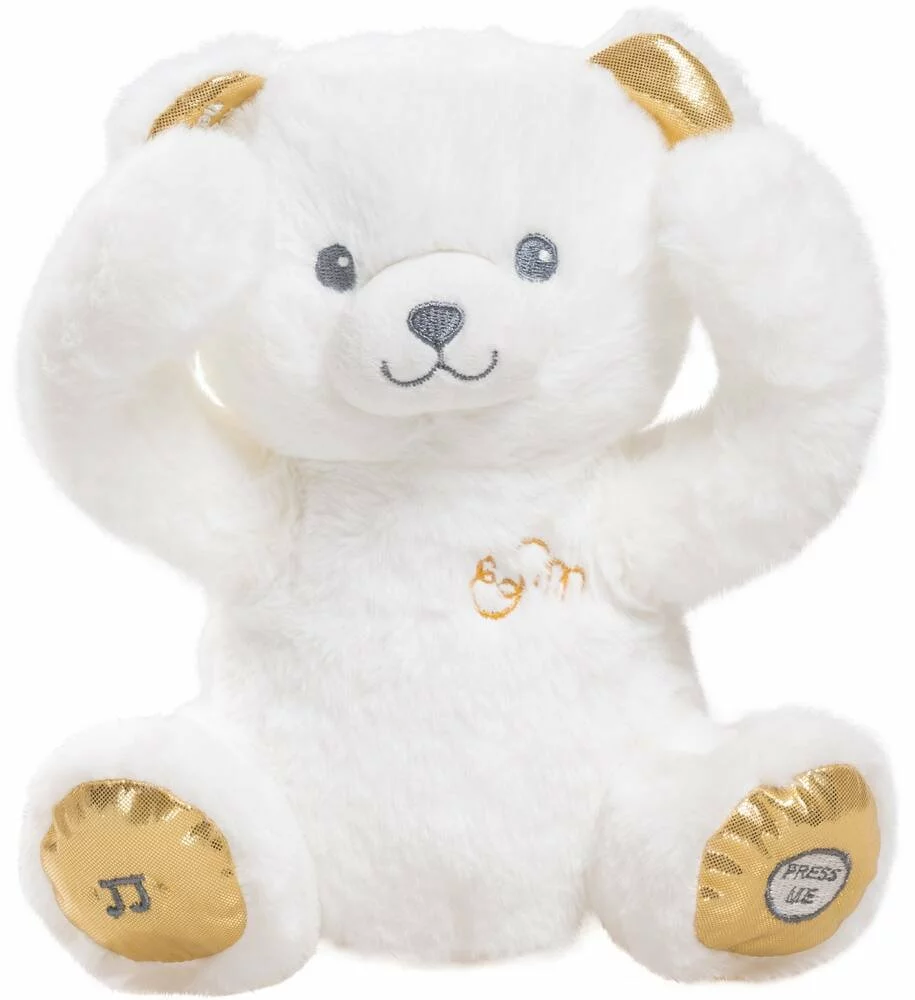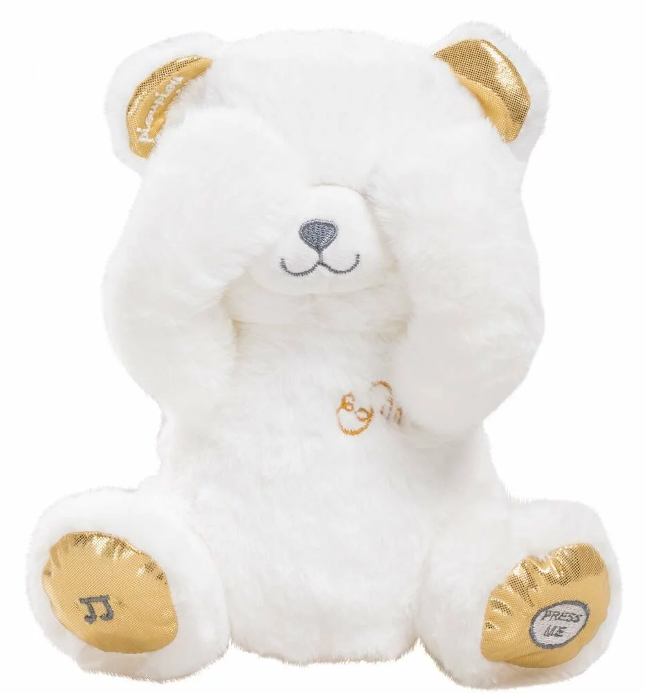 Peluche avec 2 fonctions : « coucou » pour jouer à cache-cache avec bébé et « comptine » pour s’endormir paisiblement.