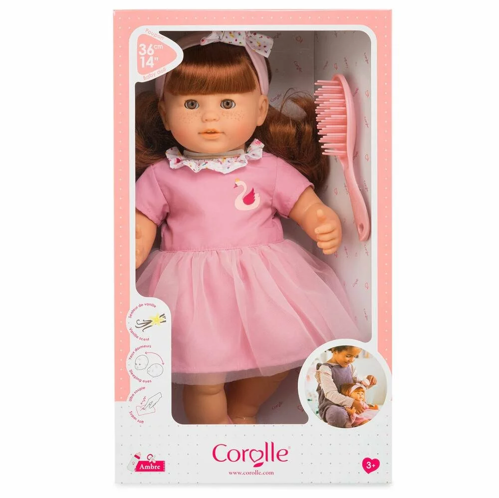 Ambre est un grand poupon Corolle pour jouer et faire comme les grands. Avec les longs cheveux faciles à coiffer et la brosse de son poupon, l’enfant imagine et réalise ses toutes premières coiffures !