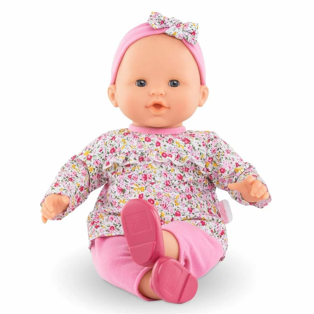 Louise est le grand poupon Corolle pour jouer et faire comme les grands. Elle mesure 36cm; une taille parfaitement adaptée aux petits bras de l’enfant pour la câliner; la materner et reproduire les gestes qui font devenir grand.Son visage; ses bras et ses jambes; à la délicate senteur de vanille; sont en vinyle doux au toucher. Son corps est souple pour faciliter ses mouvements et elle tient assise. Son pouce peut se maintenir dans sa bouche. Avec ses yeux dormeurs; elle fait dodo quand on la couche sur le dos. Elle est habillée d’une blouse et d’un pantalon; coiffée d’un bandeau et chaussée d’une paire de ballerines.