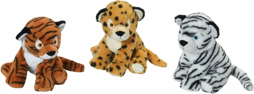Peluche tigre assis de 28 cm en matériaux recyclés. Modèle selon disponibilité.