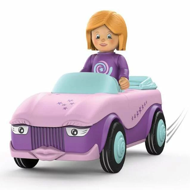 Cette voiture jouet se compose de deux parties que vous pouvez facilement emboîter l’une dans l’autre. Mettez le jouet dans la voiture et il est prêt à conduire !