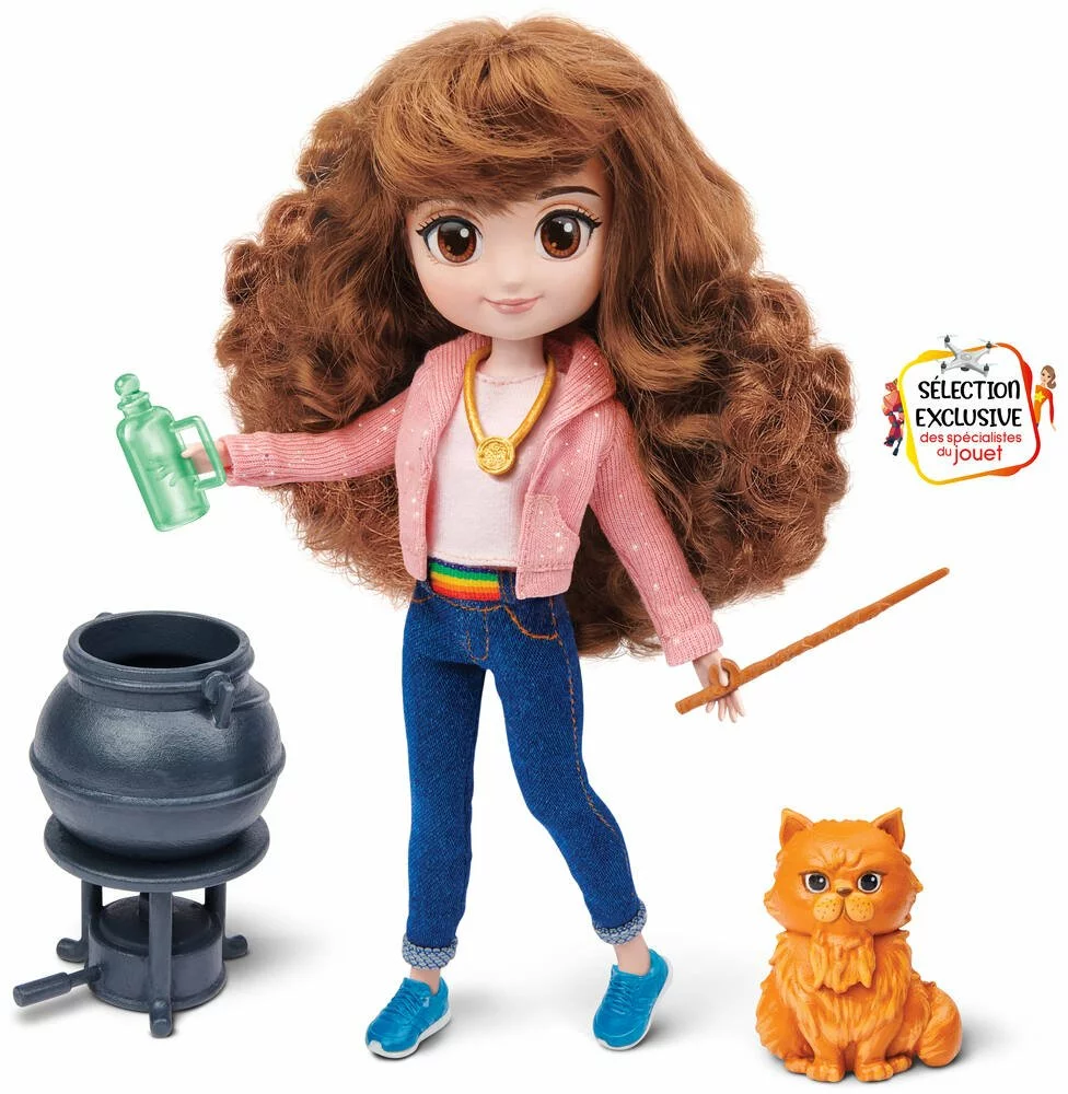 Une poupée inspirée par la série des films Harry Potter pour rejouer les scènes ou se créer son propre univers. Une poupée détaillée de Hermione Granger avec deuxtenues issues des différents films. Avec une baguette magique pour lancer des sorts et laisser libre cours à son imagination. 5 accessoires inclus. Contient : 1 poupée d’environ 20 cm, 1 tenue du film Harry Potter et le Prisonnier d’Azkaban, 1 tenue d’écolière, 5 accessoires : 1 baguette, 1 figurine de Pattenrond, 1 chaudron, 1 bouteille de potion et 1 retourneur de temps. Poupée comprenant 5 points d’articulation. Taille de la poupée : environ 20 cm.