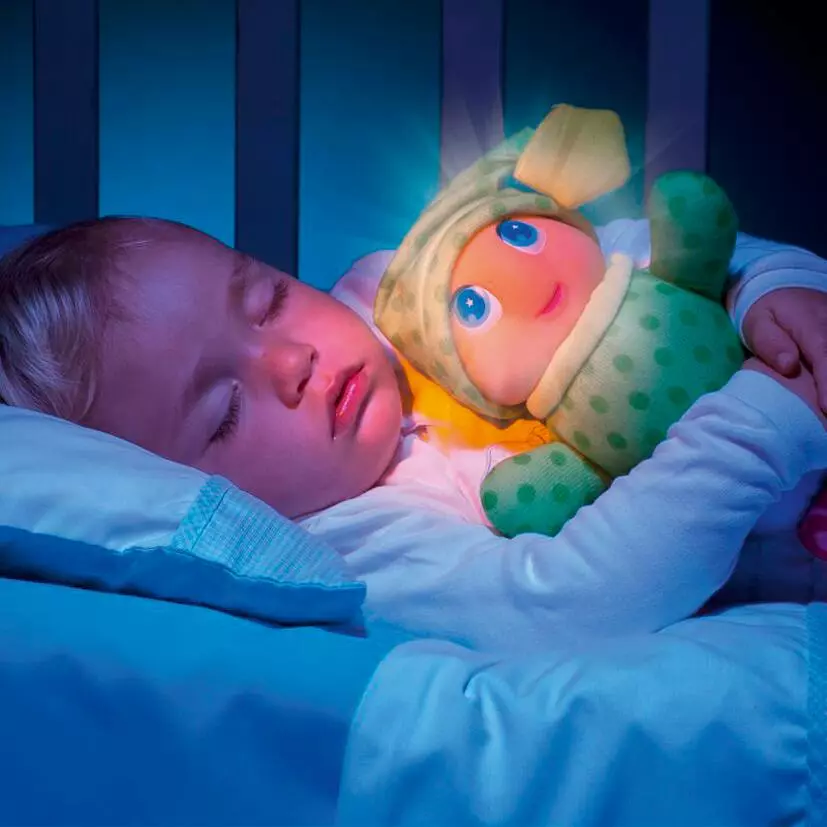 Chenille lumineuse avec 2 faces : 1 face jour et 1 face nuit. La chenille s’allume si tu presses son ventre et s’éteint si tu relâches. Son visage s’illumine ! Facile à manipuler. Lavable. 2 piles LR03 non fournies. Modèle selon disponibilité. Bénéfices pour l’enfant : stimulation sensorielle, développement de la motricité. 100% polyester. Lavage à la main après avoir enlevé le mécanisme électrique.