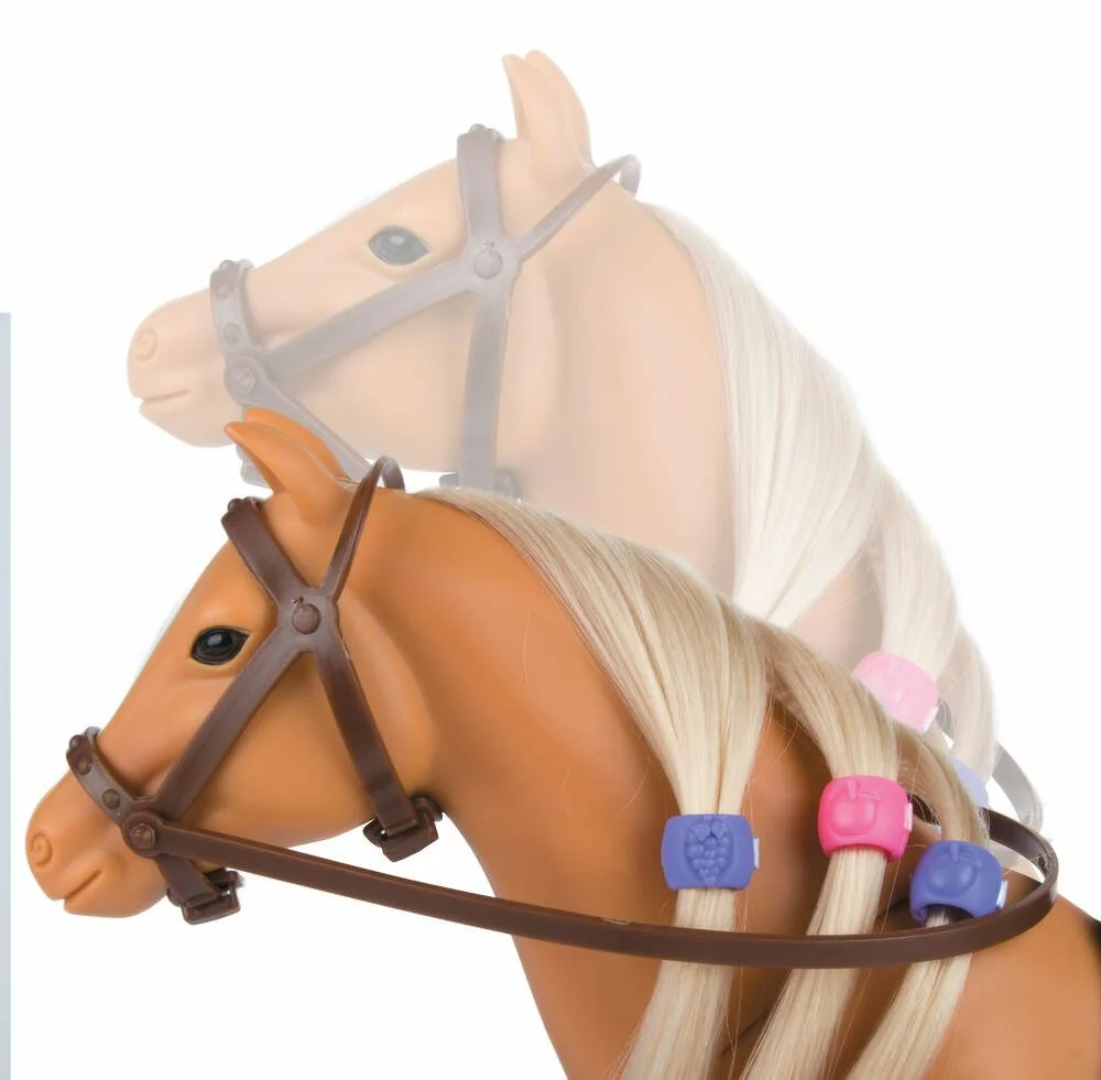 Poupée mannequin de 29 cm avec accessoires. Contenu : 1 poupée, 1 tenue, 1 paire de bottes, 1 cheval, 1 casque d’équitation, 1 seau, 1 trophée (coupe), 1 brosse à cheveux, 1 gourde, 1 boîte à repas (lunch box), 1 couteau, 1 fourchette, 1 cuillère, des jumelles, 3 pinces à cheveux, 1 selle, des rênes et 1 cravache. Tu peux faire bouger la tête du cheval de haut en bas. Les pattes avant du cheval ont 3 points d’articulation. Instructions imprimées sur la boîte. Dimensions du cheval : 38.5 x 8 x 26 cm. Mode, sport ou voyage… Thaïs est la poupée tendance qui se révèle à travers ses passions.