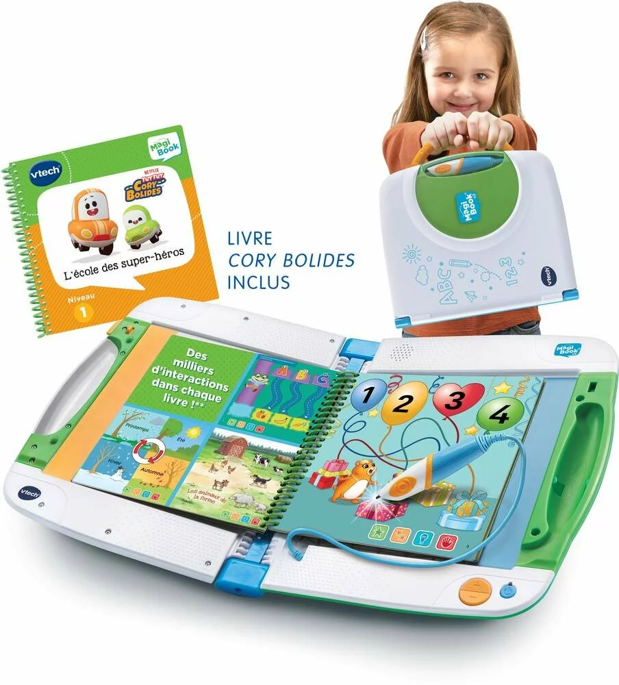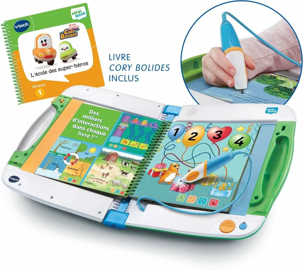Un systÚme interactif qui donne vie à une bibliothÚque de livres éducatifs. Apprentissages et interactions au fil des pages grùce au stylet. 1 livre découvertes et le livre Tut Tut Cory Bolides inclus.