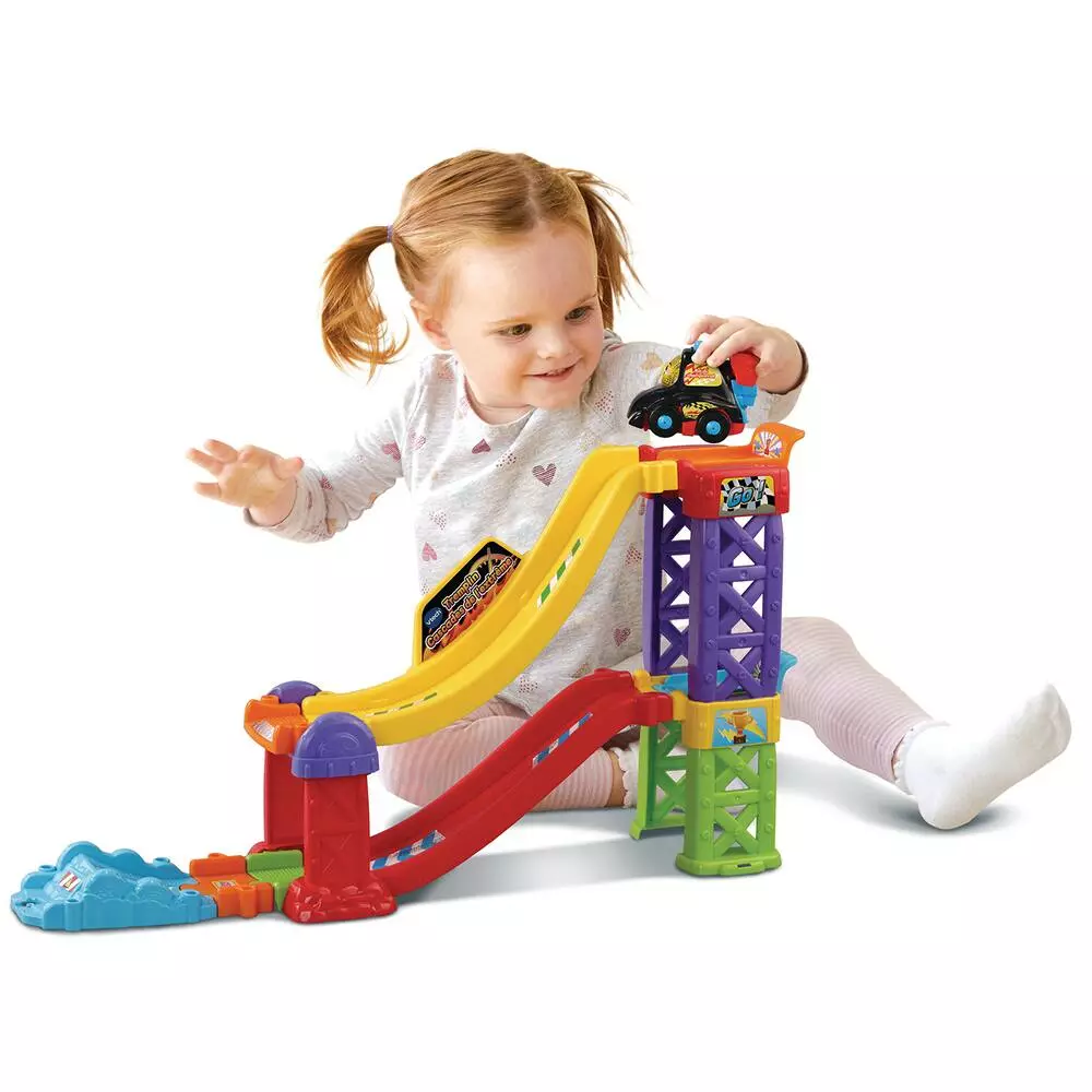 Tut Tut Bolides. Tremplin Cascades de l’extrême (+Lucas, roi du championnat). De 1 à 5 ans. Un super tremplin 3 en 1 pour faire des cascades avec les Tut Tut Bolides les plus intrépides ! Différentes configurations : double piste pour faire la course, super piste pour une descente vertigineuse, tremplin de cascades pour faire le grand saut. Avec un lanceur en haut de chaque rampe et un tremplin pour lancer le véhicule vers des cascades de l’extrême. En appuyant sur le bouton Surprise de Lucas roi du championnat, son aileron bouge ! Un véhicule inclus : Lucas roi du championnat