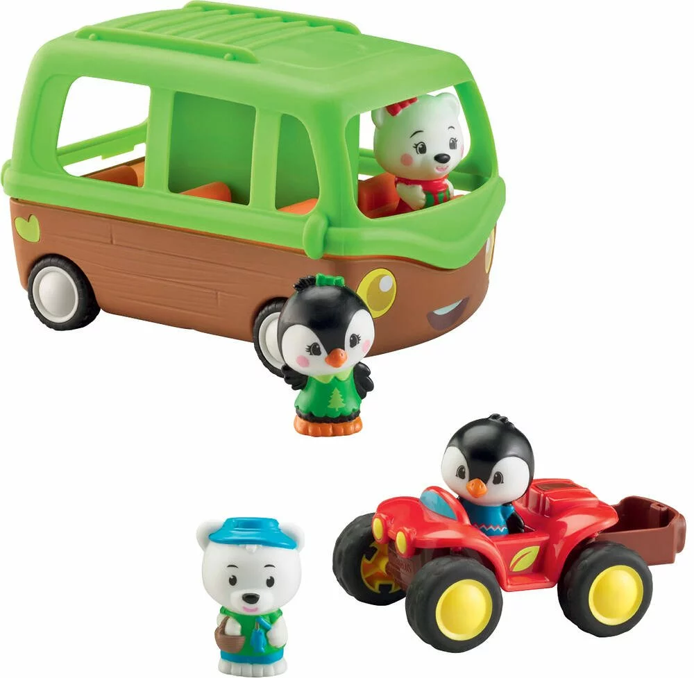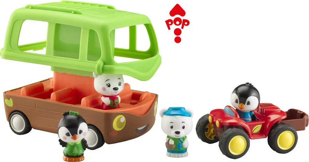 Tut tut ! C’est parti pour l’expĂ©dition avec le pack aventure ! Comprend : – Le bus aventure : 6 places Ă bord du vĂ©hicule, ainsi qu’un coffre pour mettre les bagages. Magique, pour monter Ă bord, il faut appuyer sur le toit … « Pop ! » … pour voir le bus s’ouvrir puis se refermer. Le quad : Ă dĂ©couvrir, un coffre pop-up laissant apparaitre une deuxiĂšme place, aprĂšs une simple pression. Il permet aussi de cacher tous ses trĂ©sors. 4 personnages exclusifs venant de la banquise.